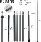 【ポッシュボタン式】プッシュボタン式で、差し込むだけでストッパーによって連結部分がしっかり固定されます。抜き出したり、差し込んだり、組立や撤収を簡単に行え、連結本数を変えることによって長さを調節しやすいです。