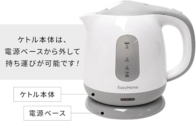 【安心安全機能】①自動電源OFF:沸騰すると自動で電源が切れる機能です。②空焚き防止機能:本体が空の場合、動作しない機能なので、安全です。