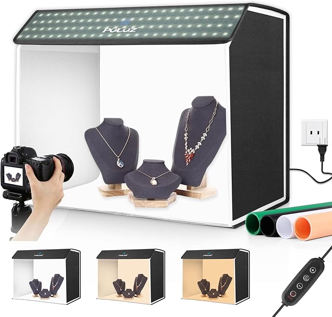 PULUZ 撮影ボックス 60 50 40cm 撮影ブース 折り畳み 物撮りセット 672個LEDビーズ/超高輝度/3色温度/無段階調光/4色PVC背景/ディフューザー付き 卓上写真撮影キット 物撮り用ボックス プラモデル 撮影ブース 携帯便利&組立簡単&収納便利 自宅撮影台 撮影用アイテム (60 50 40cm)