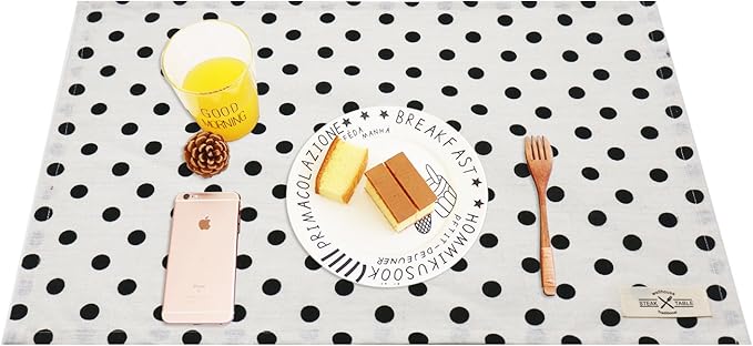 wellhouse ランチョンマット 綿 麻 大きい 60x40cm 雰囲気アップ 給食ナフキン 布 丸洗いOK (L 単層 4枚, ホワイト/玉)
