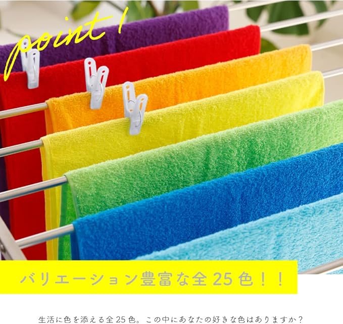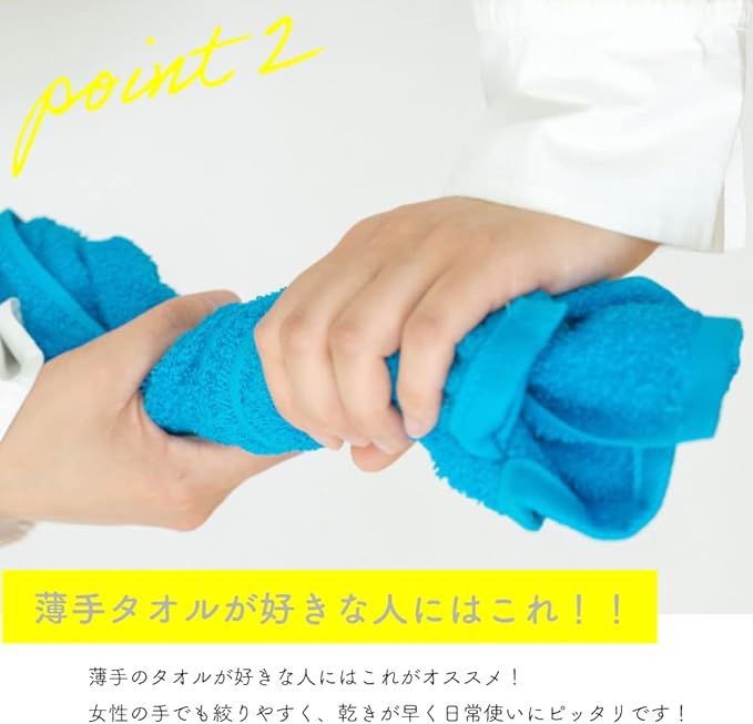 【吊していたら勝手に乾いてるくらいの薄手速乾】薄手でショートパイルなので女性の手でも絞れるくらいで、乾きも早いです。