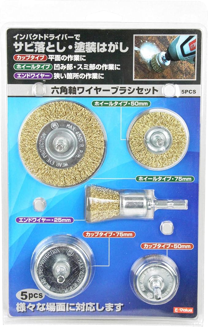 インパクトドライバーでサビ取り・塗装剥がしができる便利なセット品。