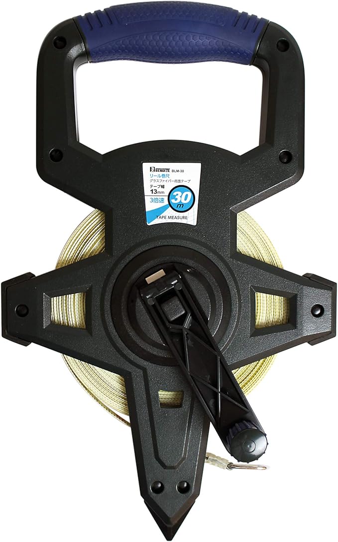 本体内部に動力歯車を3つ搭載した巻取りスピードが3倍速の仕様で、表面がホワイトと裏面がイエローでよじれた際も見分けが付きやすく、テープの目盛りに特殊インクとUVカット処理を施し、塩化ビニル被覆をした水やキズに強く鮮明で読みやすいリール型メジャーです。