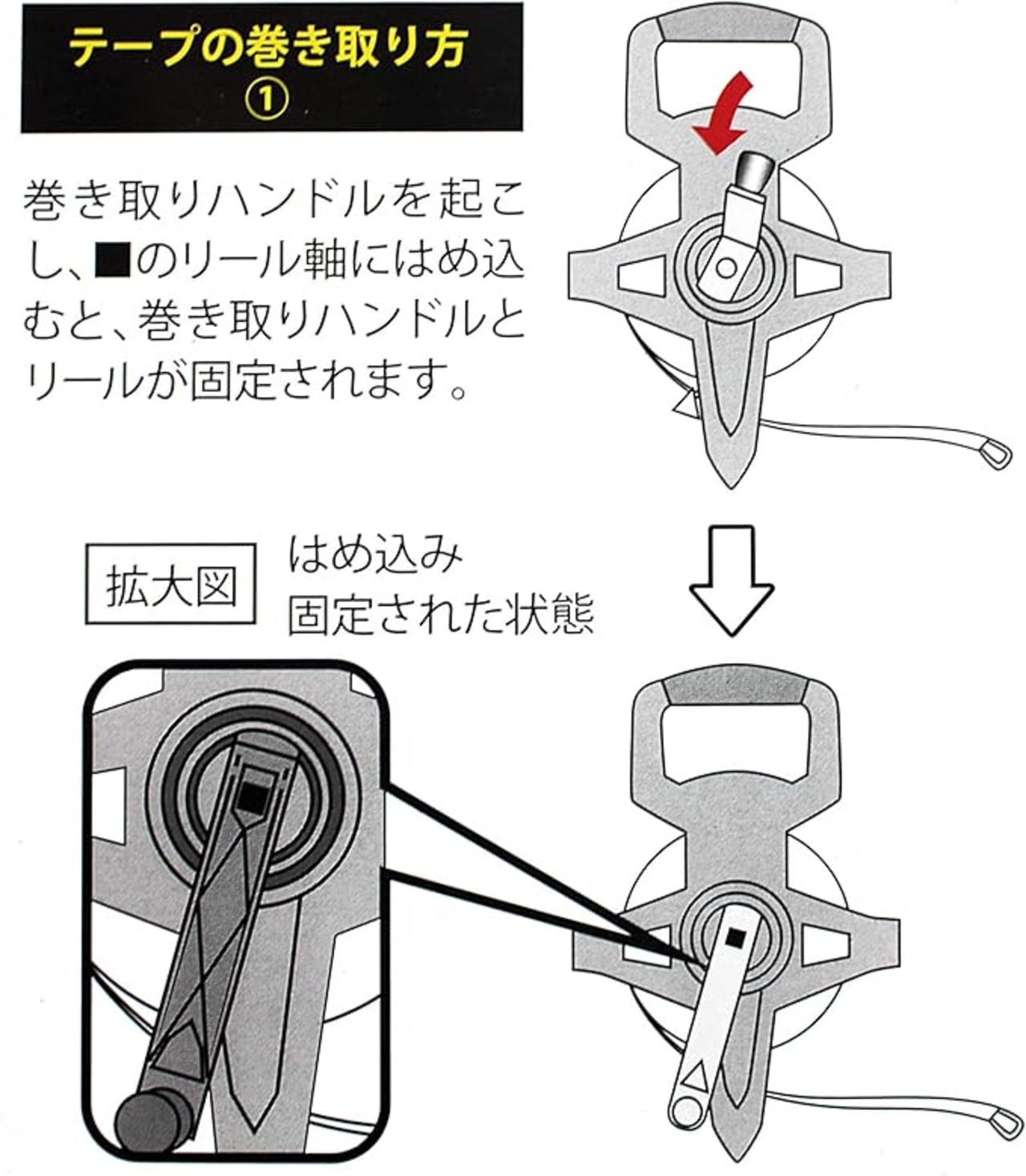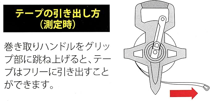 テープを引き出すときは巻き取りハンドルをグリップ部に跳ね上げると、テープはフリーに引き出すことが出来ます。
