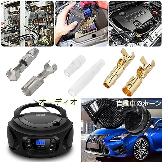 【優れた材質】端子は高品質な真鍮製で、錆び止め加工が施されて、良好な電気伝導性と耐久性があります。この接続端子セットは、十分な数のオス・メス端子、絶縁されたオス・メスチューブ を備えていますので、安心してお使いください。