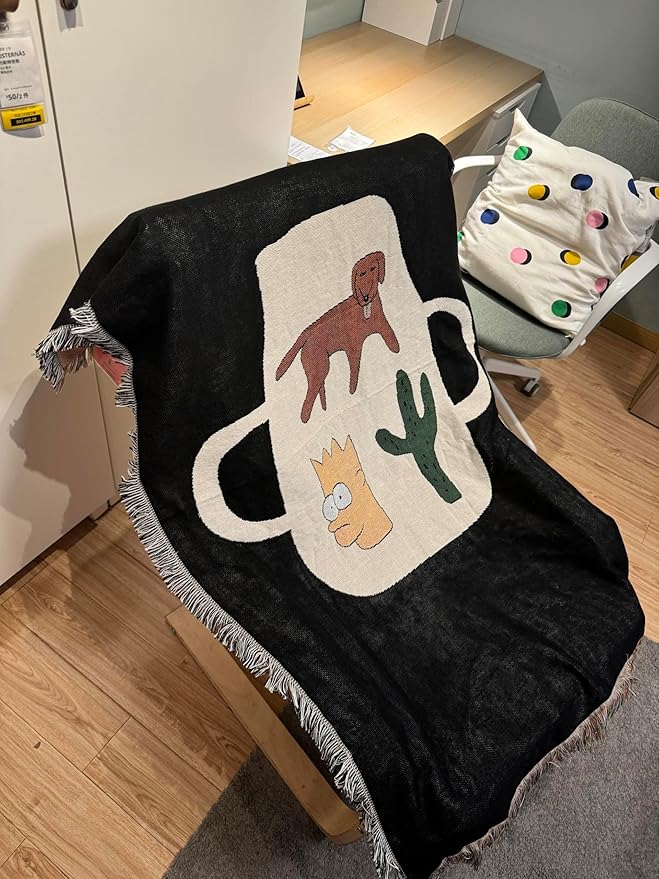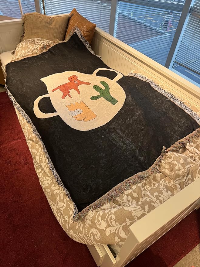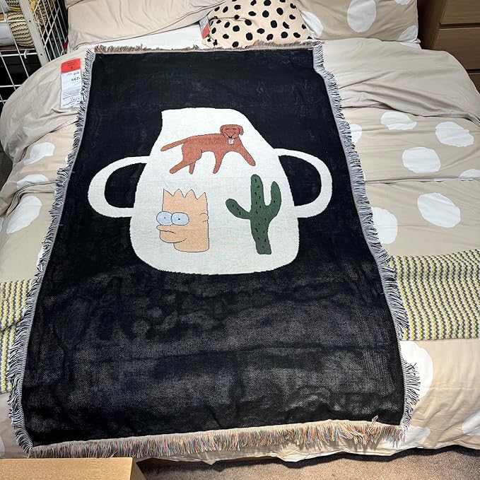 シンプソンズ⁉︎の絵柄が可愛い、しっかりとした生地のラグです。 肌触りも良いので膝掛けだったり、ソファに掛けて使用しても良いですね。