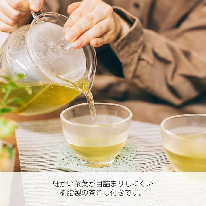 茶葉が目詰まりしない工夫がうれしい。注いでも目詰まりしない茶こし付き。耐熱ガラス製なので夏冬季節を問わず一年中使えます。お茶の風合いも、量ひと目でわかります。茶こしとフタを外せば電子レンジOK