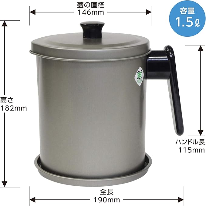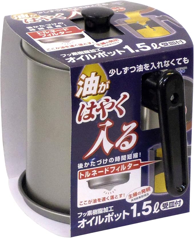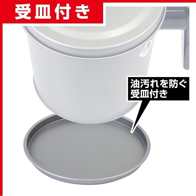 竹原製缶 オイル ポット フッ素加工 日本製 グレー 1.5L 受け皿付 油がはやく入る(主婦の発明) FO-T シルバー