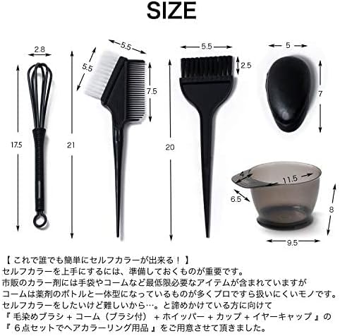 [MKZ] ヘアカラー 道具 セット 【 毛染めブラシ + コーム(ブラシ付) + ホイッパー + カップ + イヤーキャップ 付属! 】