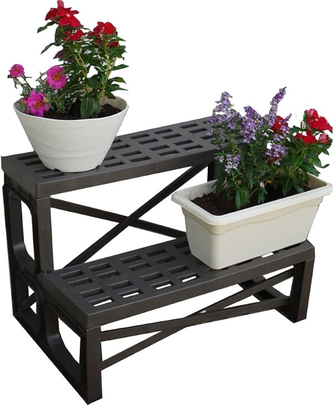 花や観葉植物をお洒落に飾るのに便利 庭や玄関先、ベランダなどに置いて華やかさを演出 この製品は、材料として「プラスチック製容器包装」のリサイクル材を使用しておりますので、色合いが異なる場合があります。 組立後サイズ:幅600 奥行400 高さ410mm 耐荷重:1段あたり約8kg
