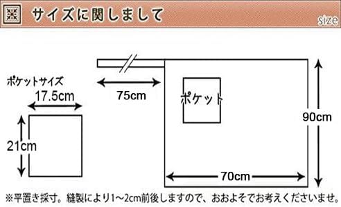 ◆サイズ:総丈約90cm 横幅約70cm 紐の長さ左右各 約75cm (大体くるぶしくらいの丈になります)◆ポケットサイズ:幅21cm 高さ17cm 右側に一つ