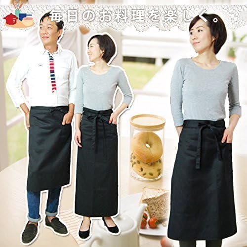 ギャルソン エプロン ロング カフェ 腰巻き シンプル 無地 男女共用 ソムリエ ポケット付 膝下ロング 園芸 ブラック
