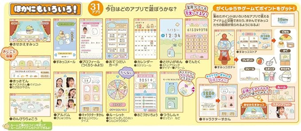 ●90アプリ、192メニューの充実した内容で、すみっコたちと遊びながら楽しくお勉強もできます。