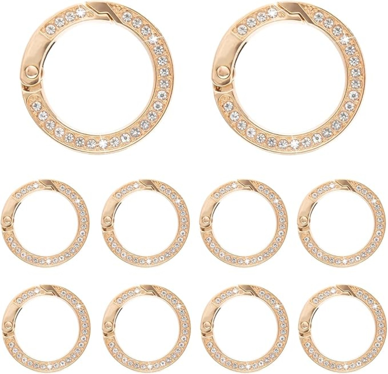 [サムコス] キーリング 10個セット 金色 おしゃれ カラビナ ラインストーン キラキラ 丸型 カバン飾り 鍵飾り バッグチャーム DIY手作りアクセサリー ジュエリー作り デコキット 人気 レディース | etshop