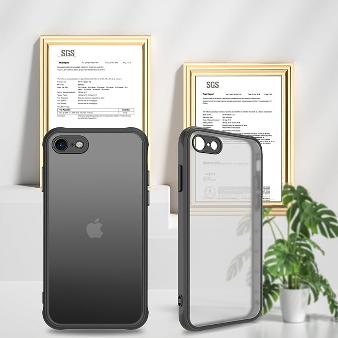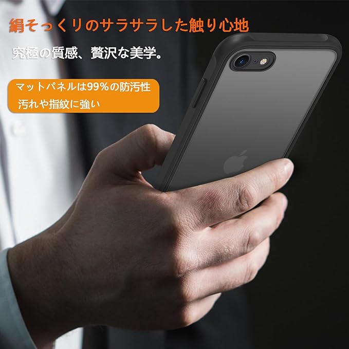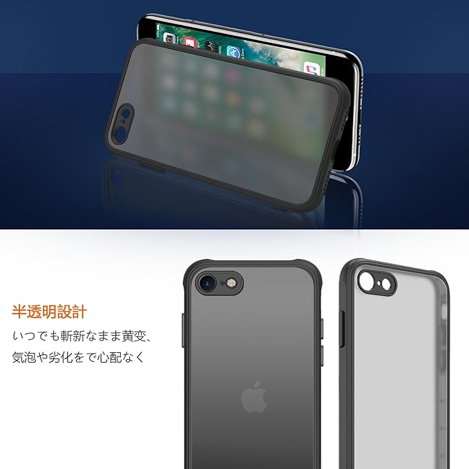 iphone se ケース iphone se3/se2 ケース スマホカバー 耐衝撃 指紋防止 滑り止め マット半透明 黄ばみなし レンズ保護 米軍MIL規格アイフォンse2 se3 7 8 用カバー 4.7インチ PinLiSheng (ブラック, iPhone SE2 / SE3 /8 /7)