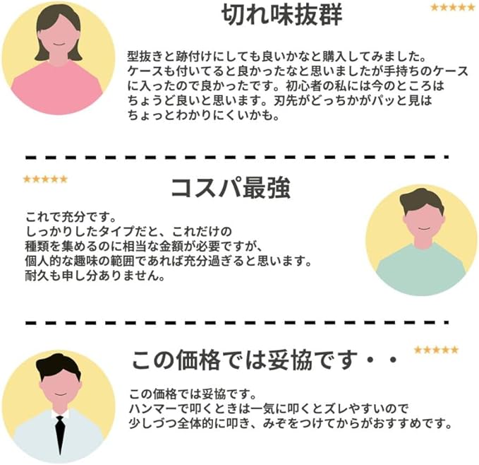 レザークラフト用のエンドパンチ 10種セットです。 ハンドメイドの革製品の角落としにご使用ください。 財布や名刺入れ、スマホケースなどをオリジナルで加工したり、 初心者の方から上級者の方までで幅広くお使いいただけます。 レザーに当てて、ハンマーなどで叩くと綺麗なカーブを作ることが出来ます。 ■商品サイズ (約)高さ23.8mm(約)厚さ0.7mm ■パンチサイズ 3mm/5mm/8mm/10mm/12mm/15mm /18mm/20mm/22mm/25mm