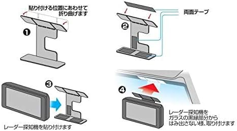 適合するレーダー探知機の受光部等を妨げない形状になっております。設置角度はブラケット先端を折り曲げ、調整を行います。