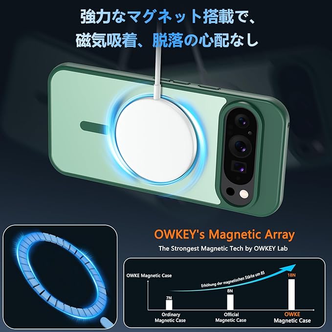 【MagSafe対応&より高速 簡単に充電】ケース内部には2024年に新開発された強力なマグネットが搭載されており、吸着力と安定性が向上し、MagSafe充電対応で差し込みのいらない超簡単・超高速充電を実現しています。また、MagSafe対応アクセサリーもいろいろ!MagSafe充電器、MagSafeバッテリー、MagSafe車載ホルダー、MagSafeリングなどのMagSafeに対応した Pixel9 ケース です。いつでもどこでも使いやすいMagSafeデザインです。