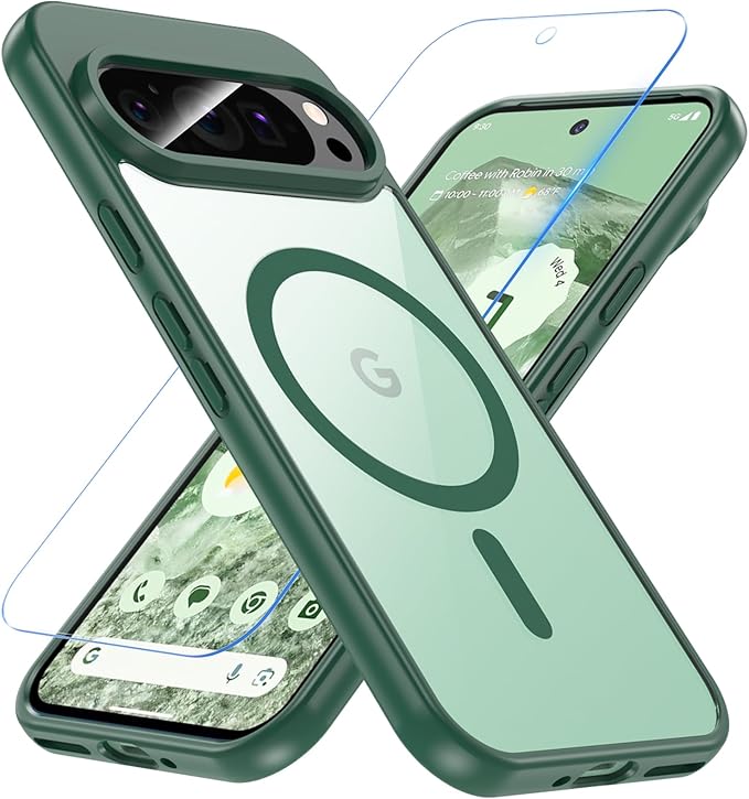 Google Pixel9 ケース Pixel9 Pro ケース OWKEY【ガラスフィルム付き・MagSafe対応】グーグル ピクセル9 ケース 黄ばみなし ストラップホール Pixel9 Pro ケース 米軍MIL規格 耐衝撃 耐久性 pixel 9 pro カバー マグネット搭載 マグセーフ対応 Google Pixel 9/Pixel 9 Pro ケース 6.3インチ グリーン+クリア | etshop