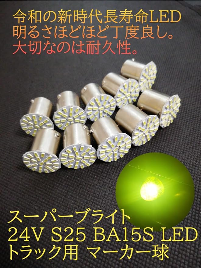 24V S25 BA15S 1156 LED シングル球 10個 22 SMD LED 平行ピン ホワイト 超高輝度3014LED 22発搭載 トラック用マーカーランプ バックランプ コーナーランプ用LED トラックLEDマーカー 24V マーカーLED