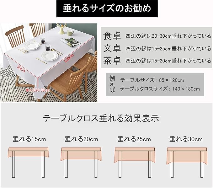 1、テーブルクロスの端が裁断時の布によってはきれいな半月型にならない場合があります。予めご了承下さい。