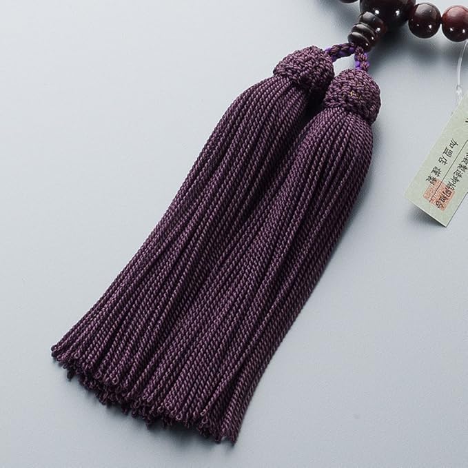 珠の素材:紫檀(艶あり)8mm玉/主珠…紫檀(艶あり)8mm玉/親珠…紫檀(艶あり)10mm玉/天珠…紫檀(艶あり)6mm玉/房の素材:正絹頭付房(古代紫色)/備考:数珠袋付き(縦9.5cm 横15cm)