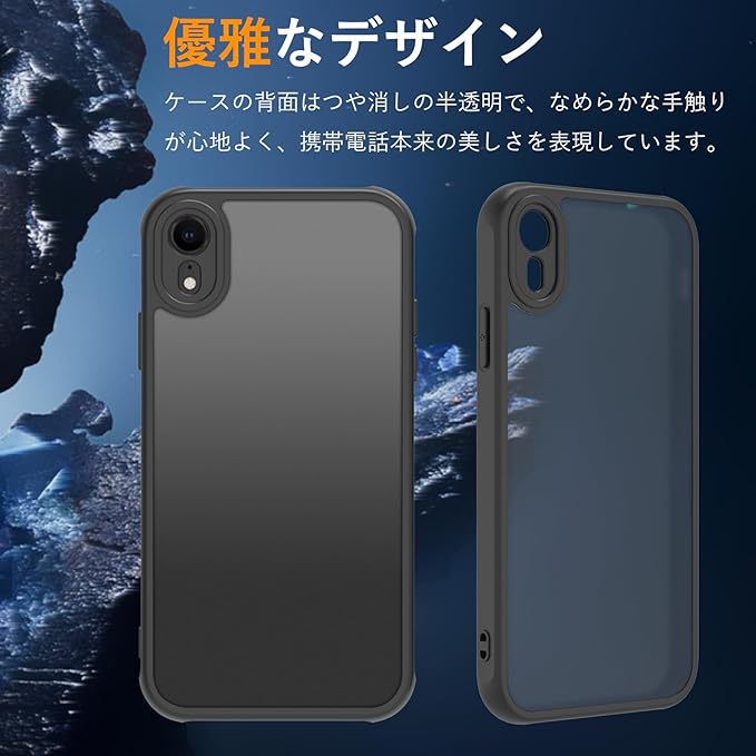 【適用型番】このスマホケースはiPhone XR専用にデザインされており、精密な技術とカッティング処理が施されています。ケースを装着したままでも電源ボタン、音量ボタン、接続ポートなどを自由に操作でき、取り付けや取り外しも簡単です。精巧で軽量なデザインで、控えめでエレガントな印象を与え、長時間持っていても疲れません【半透明美学・エレガントな高級感】このスマホケースはマットな半透明デザインを採用しており、iPhone本来の美しさをうっすらと引き立てます。表面は滑らかで心地よい手触りを持ち、指紋や汚れを効果的に防ぎます。さまざまなシーンで快適にご使用いただけます。 [すべての素材が環境にやさしい]【米軍MIL規格・高耐衝撃性】このスマホケースは、世界的に有名な米国軍事規格を取得しており、高弾性の衝撃吸収バンパーと頑丈なポリカーボネート素材を組み合わせた設計で、優れたバランスを実現しています。優れた耐衝撃性能を備え、あらゆる方向からあなたのスマホをしっかりと保護します【レンズ・画面まで細部保護】本ケースは段差設計を採用し、画面縁とカメラ周りをわずかに高く仕上げることで、外部接触によるキズを効果的に防止。背面には滑り止め加工を施し、長時間の使用でも疲れにくい快適なグリップ感を実現。ビジネスからアウトドアまで、様々なシーンで快適にご使用いただけます【カスタマーサービス】私たちは、お客様が私たちの存在理由であると確信しており、常にユーザー体験を最優先に考え、製品の品質向上に努めております。これが私たちの限定商品理念です。したがって、このiPhoneケースを安心してご購入いただけます。万が一、製品に品質の問題が発生した場合は、商品到着後30日以内にご連絡いただければ、24時間対応のオンラインサービスを提供いたします。お客様の状況に応じて、交換または返金をさせていただきます