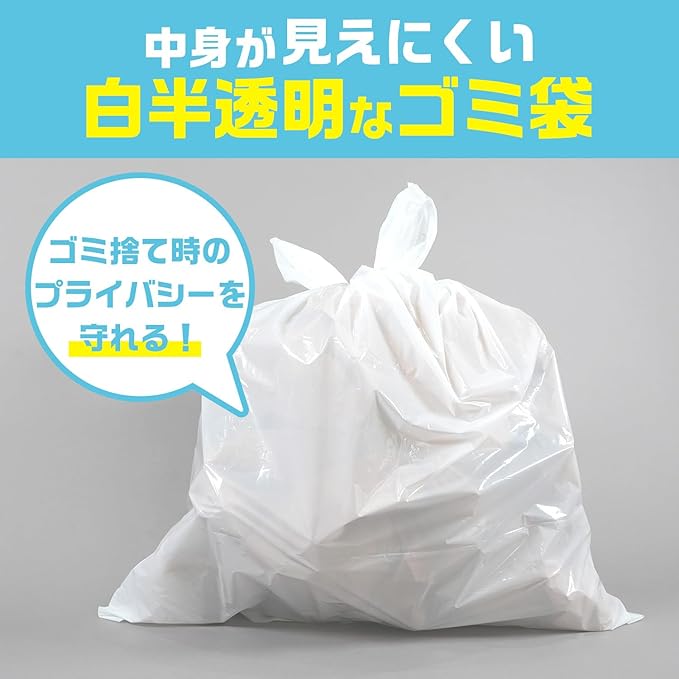【耐久性 使いやすさ】厚みがあり、破れにくい&しなやかな素材が特徴です。この素材は結びやすく、縦裂けにも強いため、日常生活からアウトドアまで幅広いシーンで活躍します。また白半透明色なので中身が見えにくくプライバシーも守られます。
