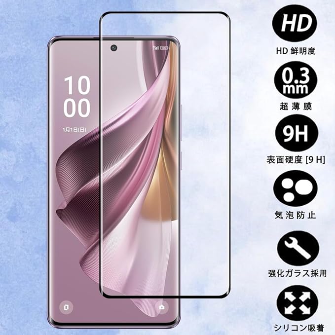【対応機種】FOR OPPO Reno10 Pro 5G 用の曲面ブラックエッジガラスフィルム全面保護。