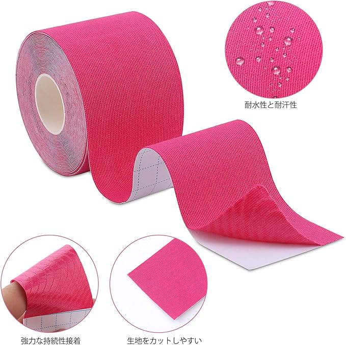 【耐久性と耐水性】 粘着力強,特に剥がれにくく耐久性、耐水性にも優れており、 重ねて張っても、切り口からめくれていません。汗、水に強いので、貼ったままでシャワーや泳ぎなど大丈夫です。