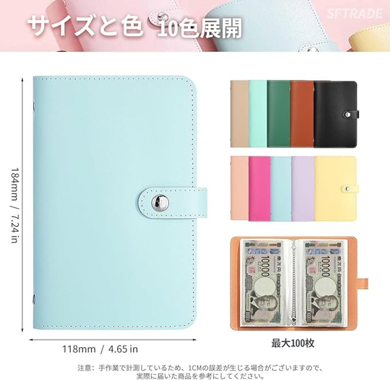 【SFTRADE】お札 貯金箱 お金仕分け 封筒貯金 ファイル バインダー お札 おしゃれ 貯金計画 災害グッズ コンパクトサイズ (内側のページ 50 ページ、現金100枚を積み重ねることができます)(水色) | etshop