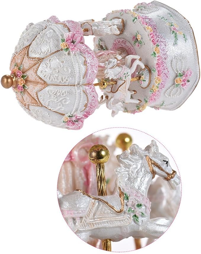 【最高品質】このオルゴールは、金属の動きを備えた高品質の天然樹脂でできており、肌にやさしく、耐久性があります。手作りの置物は、古典的なカーニバルの回転木馬に乗った 3 頭のハンサムな馬を描いており、馬を非常にリアルにするためによく描かれています。オルゴール (3.9 3.9 6.3inches) は、お部屋やリビングルームを完璧に飾ります