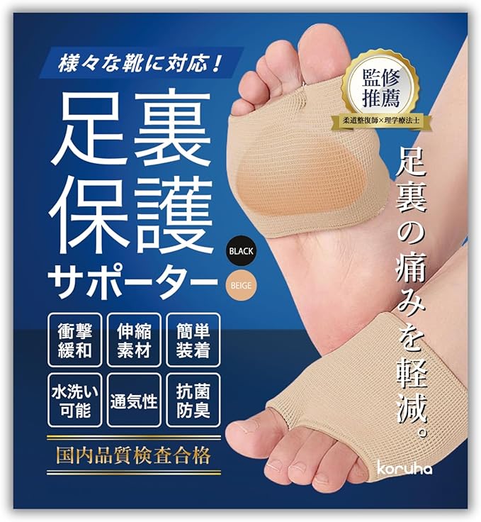 ⭕️ご購入前に必ずお読みください※長距離移動や激しい運動時にはどうしても脱げてくる場合がございます、ご了承ください。(あくまで足裏を保護するパッドになります)。⭕️サイズが合わなかった場合は当店に直接ご連絡ください。(※交換対応可能です) ✅【柔道整復師 理学療法士監修・推薦!】 柔道整復師・ひがし鍼灸整体院院長の東大輔先生と、理学療法士・整体師として活躍されている湯川国俊先生と共同開発したサポーターです。「当製品は膝や腰の負担もサポートできるので、足裏の負担軽減に加え、バランスの取れた歩き方にも近づく事ができます」(東大輔先生)「実際に装着し1日過ごしてみたところ、快適な歩行を実感。足裏だけでなく足の付け根への負担も軽減されていると感じました。」(湯川国俊先生)