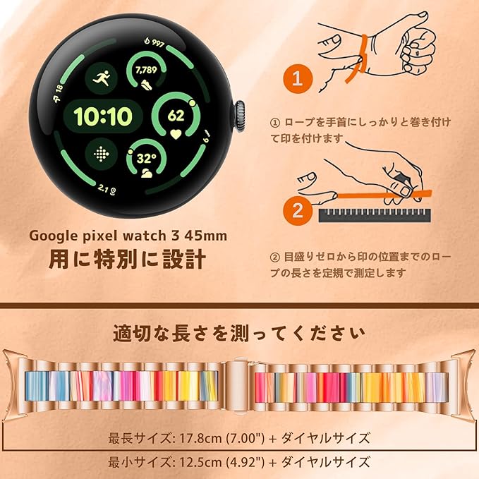 [ShinKin] バンド Google Pixel Watch 4 45mm / Google Pixel Watch 3 45mm 対応 樹脂交換ベルト ステンレス製 金属バンド 替えストラップ 交換用ベルト 防錆 耐久性のある ビジネス風 女性の男性の( ローズゴールド+レインボーカラー ) | etshop