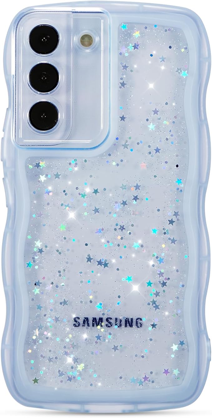 ZTOFERA Samsung Galaxy S22 5G 用波状のケース 透明 クリアケース サムスン ギャラクシー S22 ウェーブケース 可愛い おしゃれ キラキラ 星 スマホケース ソフトTPU スターパターン 軽量 耐衝撃 人気 韓国 S22 ケース 女子 女性 携帯電話カバー (ブルー) | etshop