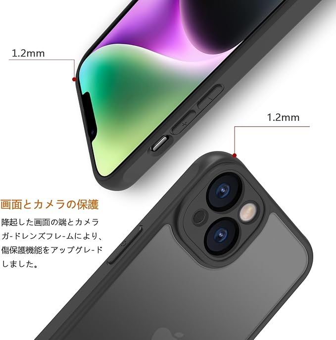 iPhone 14 ケース iphone ケース iPhone14 ケース スマホカバー 耐衝撃 指紋防止 滑り止め マット半透明 黄ばみなし レンズ保護 米軍MIL規格アイフォン14 用カバー6.1 インチ PinLiSheng (ブラック, iPhone 14) | etshop