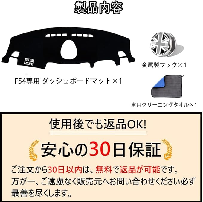 BMW MINI ミニ クーパー F54 F55 F56 F60専用 ダッシュボードマット 日焼け防止 ダッシュボード 保護マット mini クーパー アクセサリー Fシリーズ mini クロスオーバー アクセサリー ミニクーパー クーパーS クロスオーバー クラブマン カントリーマン用 BMW MINI 用 アクセサリー グッズ (F54専用-ブラック) | etshop