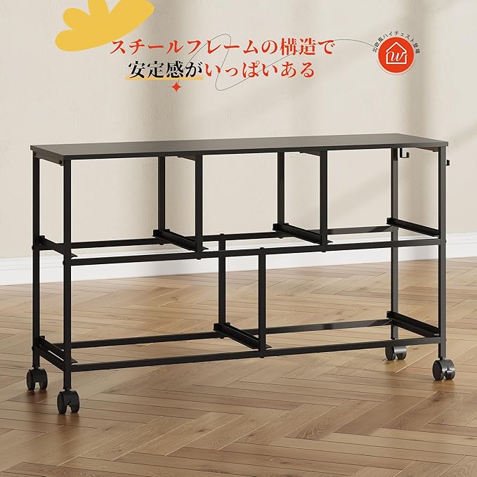 4.頑丈構造&耐久性高い: スチールフレーム構造により、製品はより頑丈になり、長期間使用できます。天板は30kgの重量を支えることができます。天板は30kgの重さに耐え、各引き出しは2.5kg、サイドポケットは5kg、フックは5kgの重さを支えます。天板はエンボス加工の木製材料を使用し、キズ付きにくく、耐水性に優れています。引き出し面にはレザー素材を使用し、防水性が高く、高級感があります。質感のある取っ手は使いやすく、引っ張りやすいデザインです。