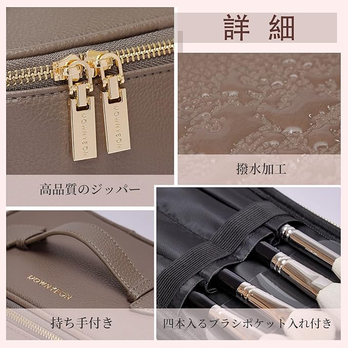【優れた収納力】メイクポーチの蓋に4つの伸縮性のあるブラシポケットがあり。メインコンパートメントは、調整可能なパッド入りの仕切りで化粧品やスキンケアを保管できます。特別なアイテムのための2つの内部ポケットも提供します。整理がしやすく、ポーチの中がゴチャゴチャになりにくくて便利。