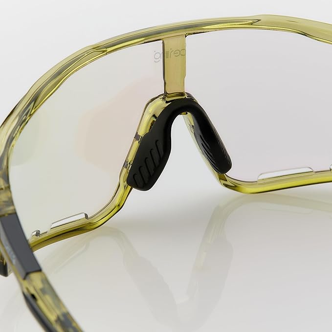 雨から曇天、晴天まで全ての天候で使用可能な、紫外線の量によってレンズの濃度が変わる調光タイプのサングラス
