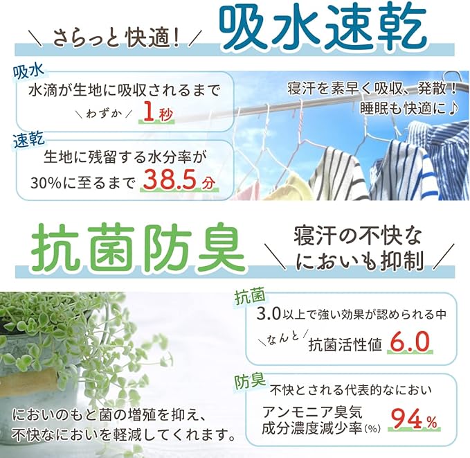 【パイル地】吸水性が良く、パイル部分が水分をしっかりと吸い取ってくれます。肌触りもやわらかで快適です。