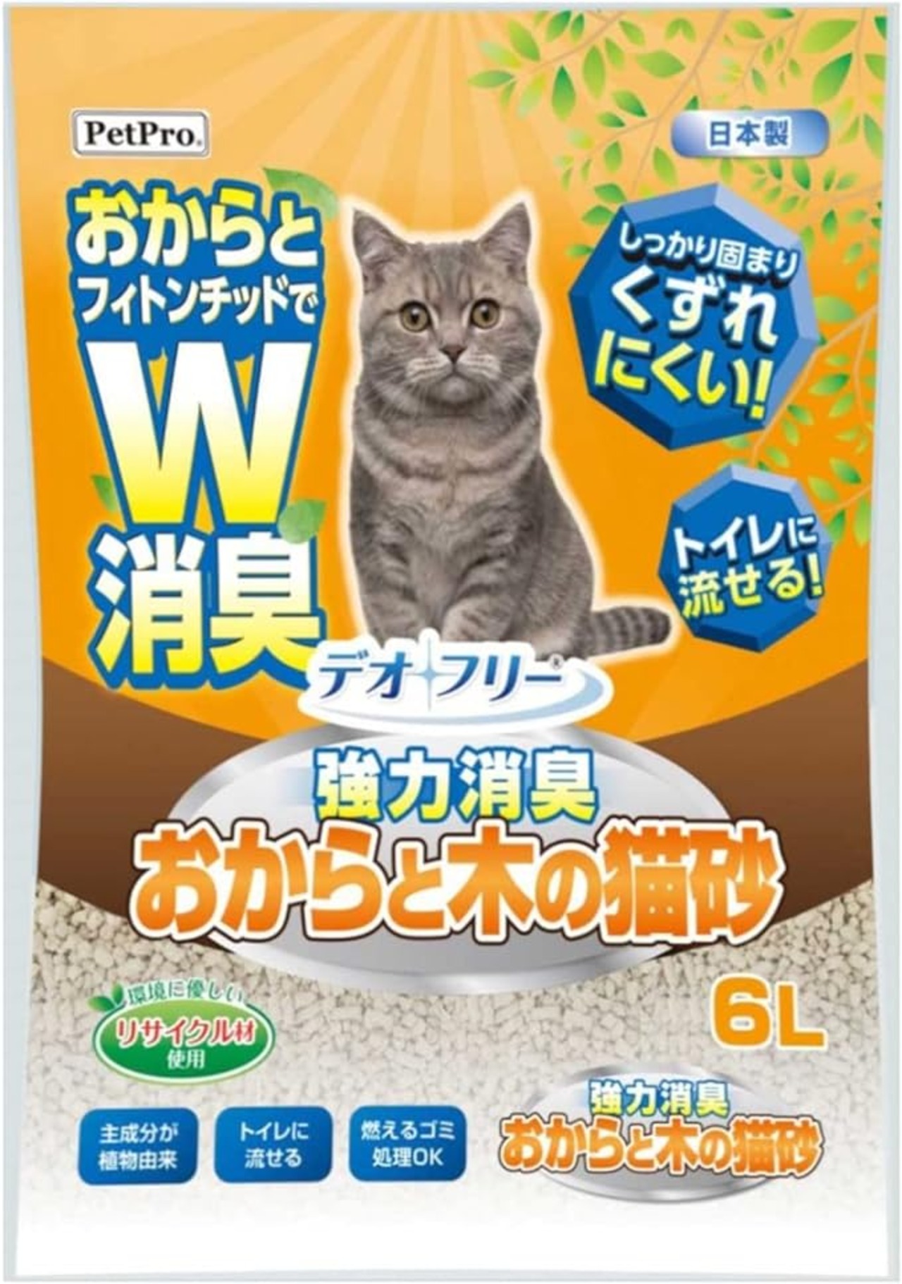 おからとフィトンチッドでW消臭。しっかり固まりトイレに流せる