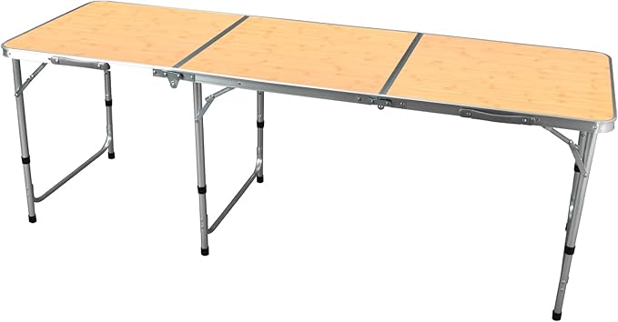 【アウトドアに最適な折りたたみテーブル】広々とした天板と実用的なサイズ感で、キャンプ・BBQ・ピクニックなどあらゆるシーンで大活躍するアウトドア専用テーブルです。【高さ調整は3段階!使い方自由自在】高さは約53cm、61cm、70cmの3段階に調節できるので、子供から大人までシーンに合わせた最適な高さで使用できます。【3つ折り構造でスリムに収納】テーブルは3つ折り構造になっており、使わない時はコンパクトにたたんで保管が可能。収納スペースを取らず、自宅でも車内でも場所を取りません。【取っ手付きでどこへでも持ち運べる】収納時はアタッシュケースのように持ち手がついており、女性や子供でも楽に持ち運べる携帯性の高さが魅力です。