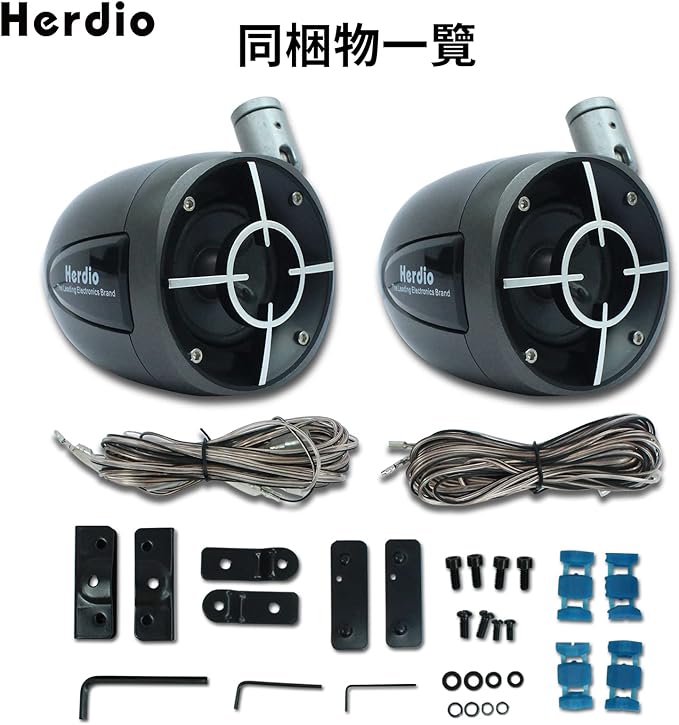 【箱の内容】スピーカ 2、金具1 2、金具2 2、金具3 2、角穴付ネジ(M6mm 14mm) 4、座金付ネジ(M5mm 8mm) 2、座金付ネジ(M6mm 16mm) 2、六角レンチ(大) 1、六角レンチ(小) 1、スピーカーケーブル 2、説明書 1