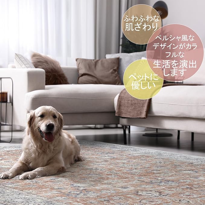 HAOCOO ラグ カーペット 3畳 洗える 200 250cm オールシーズン適用 絨毯 ペルシャ風 ラグマット ふわふわ おしゃれ 滑り止め ホットカーペット対応 防ダニ 防臭 防音 リビング 寝室 ダイニングマット アンティーク 花柄 キャメル | etshop