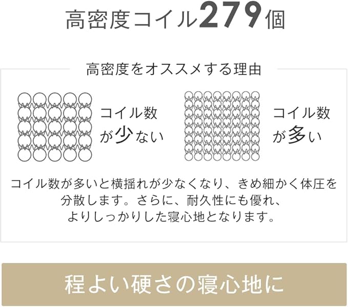 【サイズ】【セミシングル】幅80 奥行195 高さ11cm / コイル数:279個