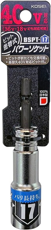ベストツール KOSEI 40V対応 ビット差替式パワーソケット 17mm 差込角6.35mm インパクトドライバー用ソケット 六角深穴タイプ 高耐久鋼NKD-1仕様 18V対応 36V対応 日本製 BSPT-17 コーセイ | etshop