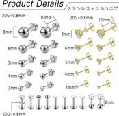素材:ステンレス+ジルコニア ;20G ; ボール:3mm、4mm、5mm、6mm、8mm 重量:5g