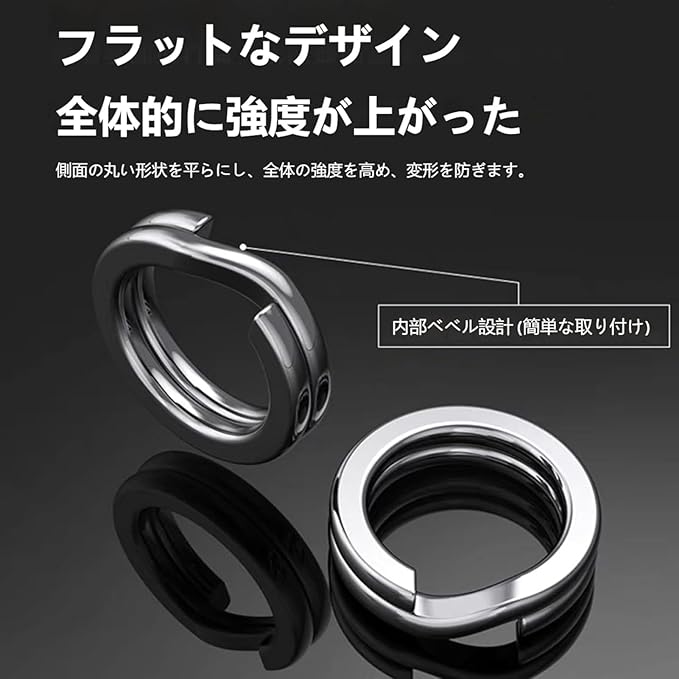 【強度保証】平打ち加工済み、強度がアップにします。あなたのリグとルアー用ヘビーデューティステンレススチールダブルループスプリットリング海釣りや粗釣りに使用します。