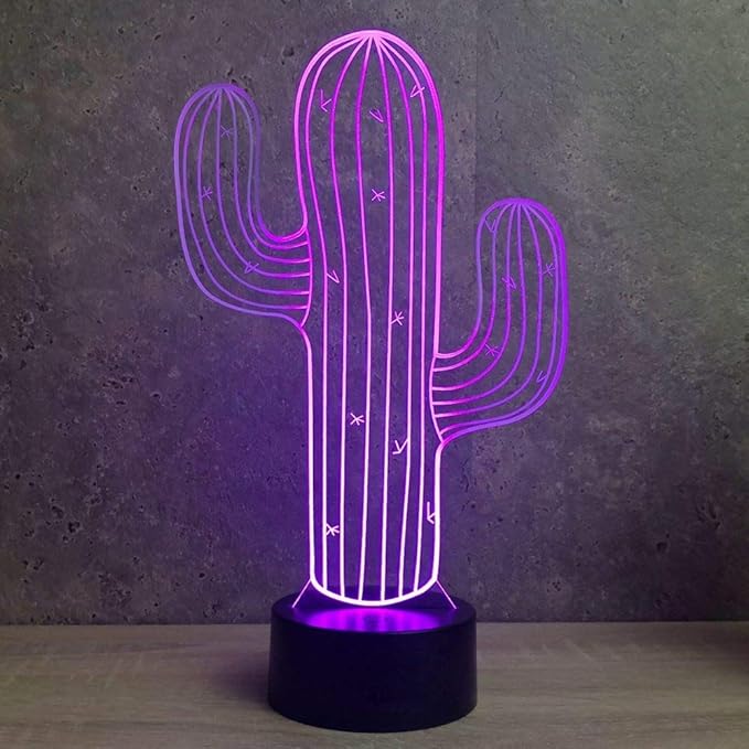 Jinnwell 3D サボテン フラワー ナイトライト ランプ イリュージョン LED 7色変化 タッチスイッチ テーブル デスク デコレーション ランプ ギフト アクリル フラット ABS ベース USB ケーブル おもちゃ | etshop